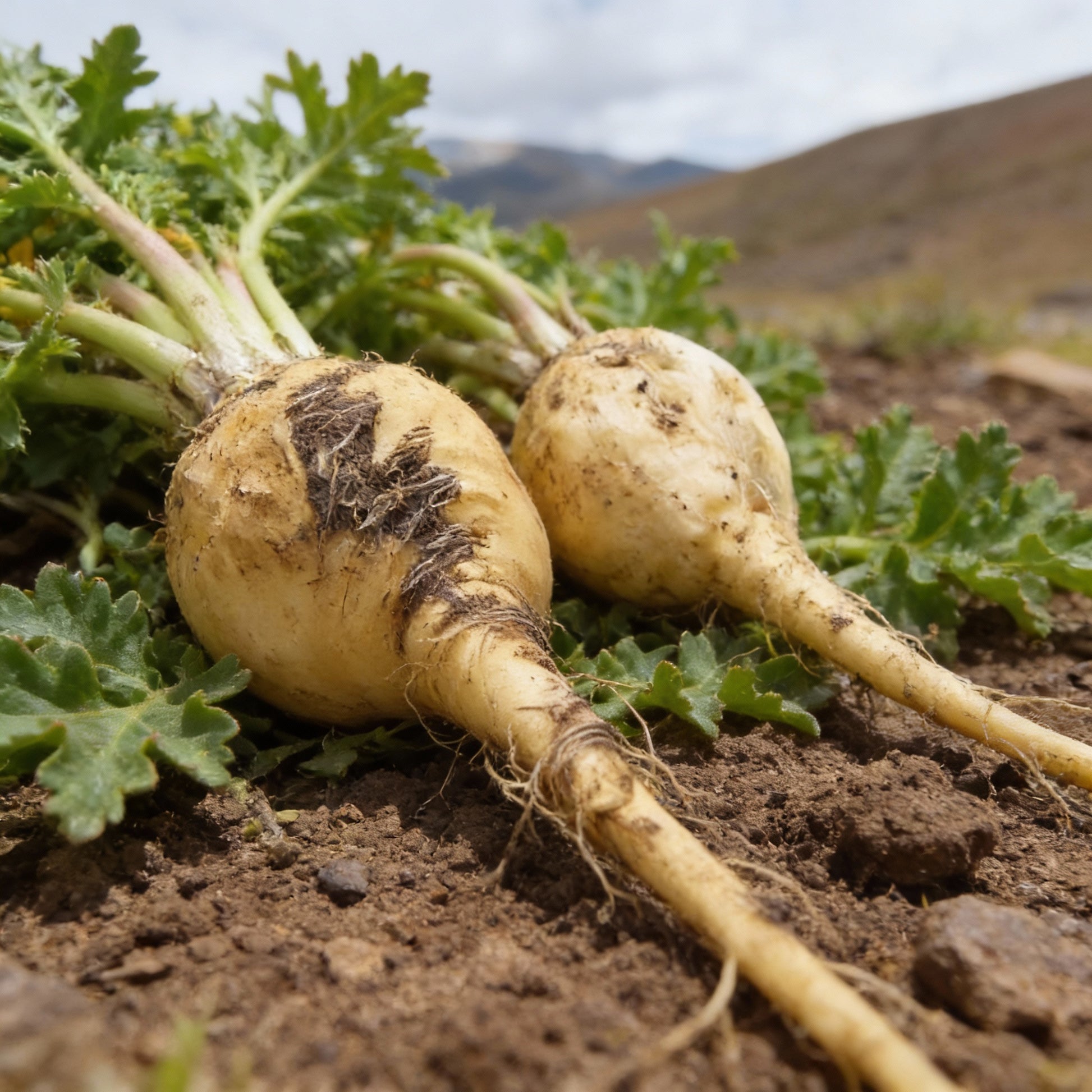Low-growing rosette forming edible roots